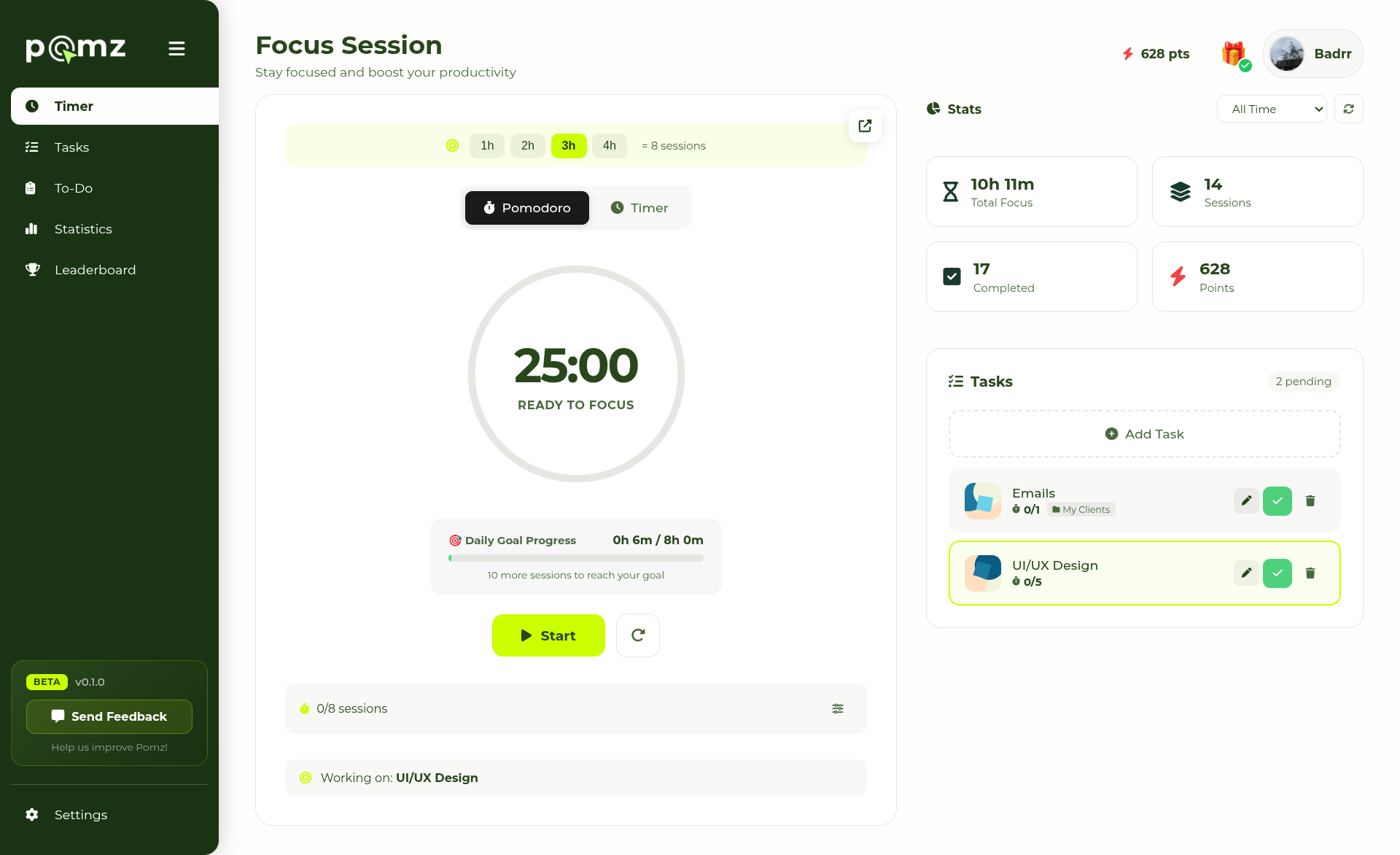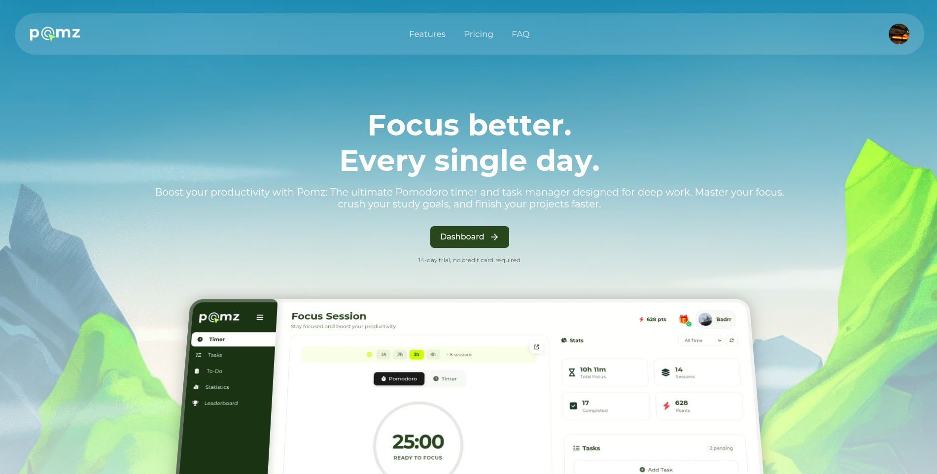 Boost your productivity with Pomz: The ultimate Pomodoro timer and task manager designed for deep work. Master your focus, crush your study goals, and finish your projects faster.